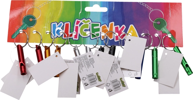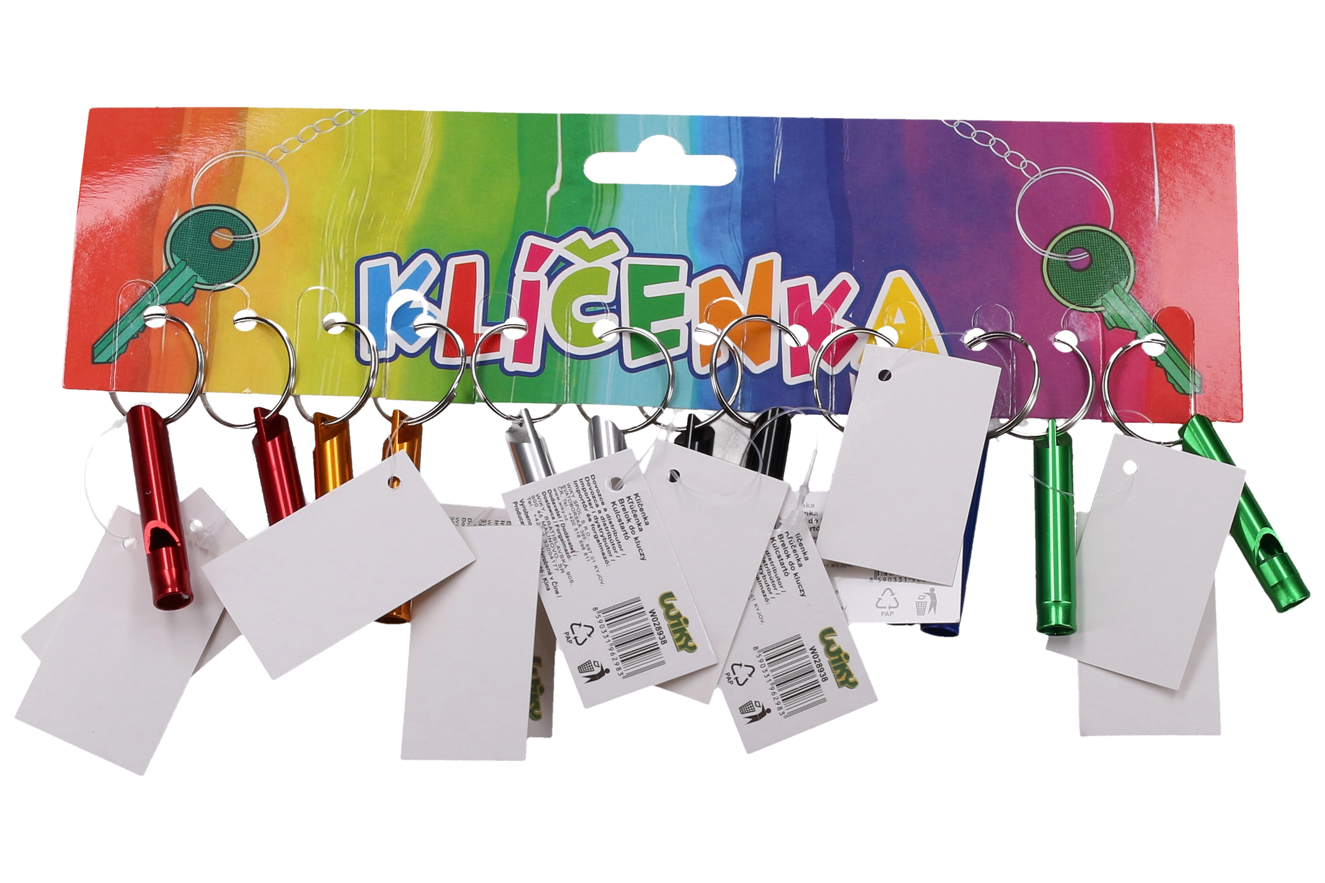 Praktiškas raktų pakabukas su spalvotu švilpuku, kurio ilgis 4,5 cm, yra idealus aksesuaras raktams, kuprinei ar rankinei. Jis suteikia greitą signalizavimo garsą, didina saugumą, padeda orientuotis ir praverčia pramogoms.