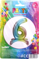Papuoškite savo šventę stilingu balionu skaičiaus 6 formos, vaivorykštės spalvų. Šis balionas puikiai tinka gimtadieniams ir sukaktims – jo ryškios vaivorykštės spalvos ir 80 cm dydis sukuria išskirtinę dekoraciją.