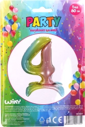 Pagyvinkite savo šventę vaivorykštiniu balionu skaičiaus 4 formos. Didelis formatas matomas net iš tolo, o spalvų perėjimas kuria patrauklų efektą, puikiai tinkantį modernioms gimtadienių ar jubiliejų dekoracijoms.
