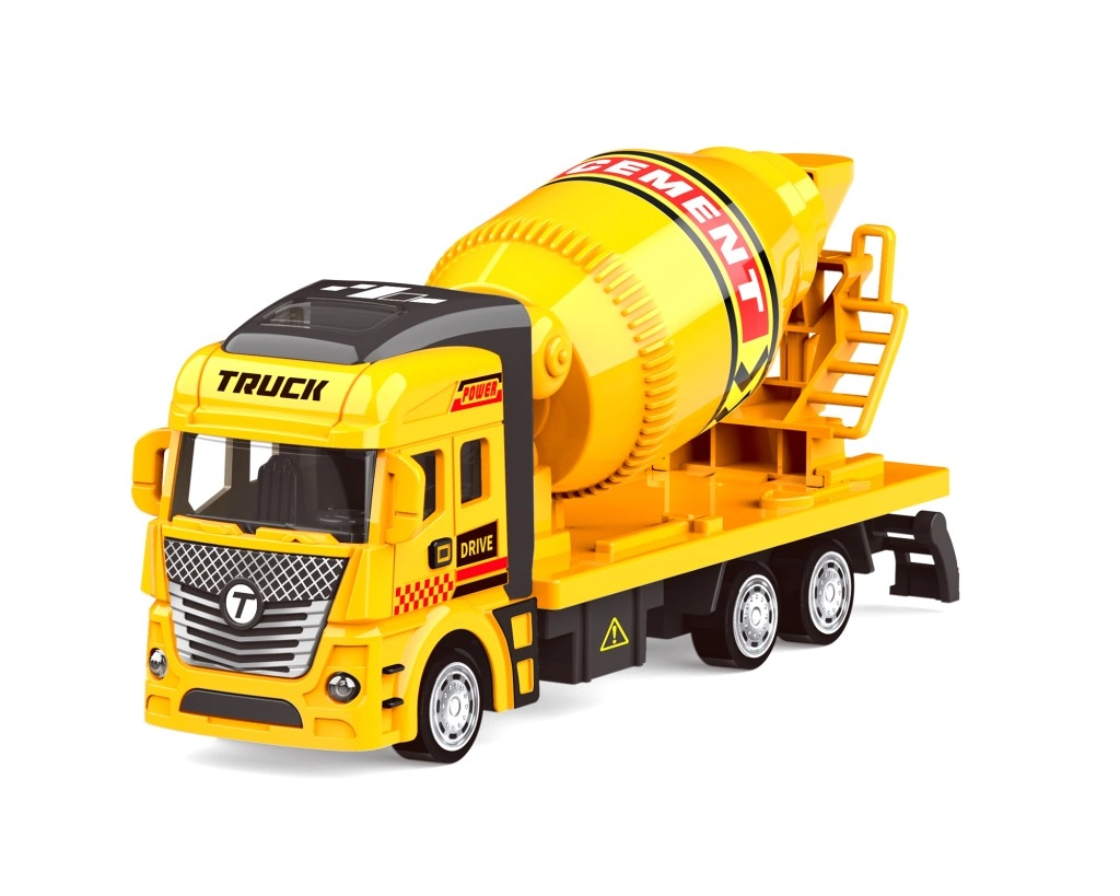 Statybinė maišyklė su CEMENT užrašu ir ryškia geltona spalva suteikia žaidimui dinamikos ir autentiškumo – puikus statybinės technikos flotilės papildymas.