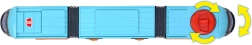 Ant tramvajaus stogo įrengtas pasukamas logotipas, kuriuo vaikai intuityviai valdo važiavimo kryptį – į dešinę ir į kairę.