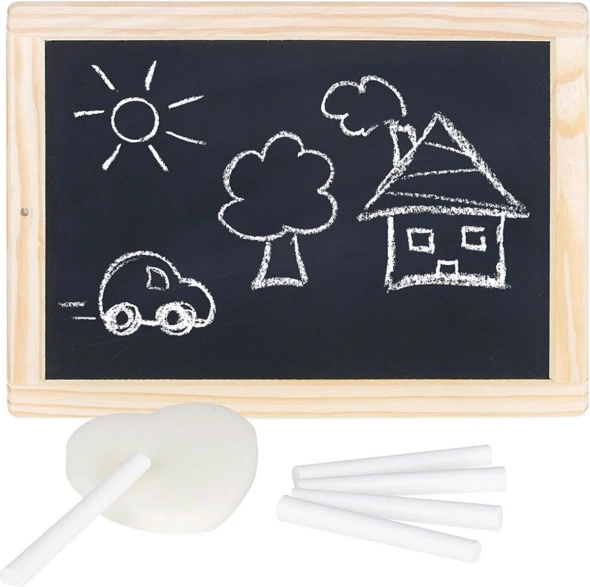Ši kokybiška dvipusė juodoji lenta – puikus pasirinkimas vaikams ir suaugusiesiems, mėgstantiems piešti, rašyti ar skaičiuoti. Dėl 25,8 x 18,7 x 0,7 cm matmenų ją lengva padėti ant stalo ar lentynos. Dėka pakabinimo angos trumpesniojoje rėmo pusėje lentą paprasta pritvirtinti prie sienos.