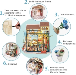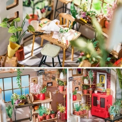 Miniatiūrinis gėlių parduotuvės namelis ROLIFE Robotime su LED apšvietimu