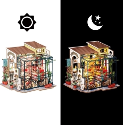 Atraskite detalios miniatiūros gėlių parduotuvę iš ROLIFE Robotime. Šis kūrybinis „pasidaryk pats“ rinkinys siūlo gausias detales, jaukų LED apšvietimą ir ramų kūrybinį procesą 20+ valandų. Idealu kaip dizaino dekoracija ir originali dovana miniatiūrų bei rankdarbių mėgėjams.