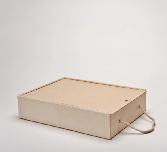 Visa komplektacija patogiai supakuota į medinį lagaminėlį su stumdomu dangteliu, kad būtų lengva nešiotis.