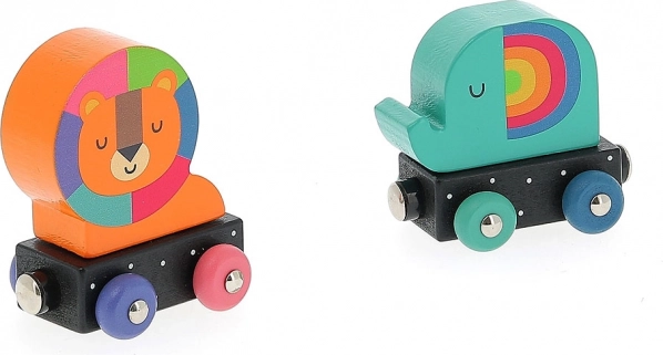 Vagonėliai vaizduoja skirtingus gyvūnus, kurie ne tik gražūs, bet ir įkvepia žaismingą vaizduotę.