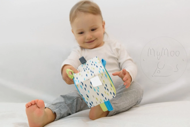 Griebimo kubas MyMoo Busy Cube – tai ideali jutiminė priemonė kūdikių ir mažylių gebėjimams lavinti. Dėl įvairių veiklų ir medžiagų jis skatina traukimo, spaudimo, tyrinėjimo ir griebimo įgūdžius, taip stiprindamas pirštukus ir žadindamas vaikų smalsumą. Lengva ir saugi konstrukcija pritaikyta mažoms rankytėms.