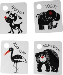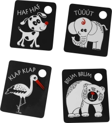 Skatinkite ankstyvą kūdikio raidą su kontrastinėmis kortelėmis, kurios stimuliuoja regą ir dėmesį. Rinkinyje yra 9 tvirtos kortelės iš čekų medžiagų, su anga pakabinimui ir plastikiniu žiedu patogiam sujungimui. Kortelės lavina regos stimuliaciją, smulkiąją motoriką ir gyvūnėlių pažinimą.