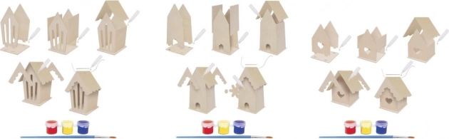 Rinkinyje yra visi reikalingi įrankiai – iš anksto išpjauta mediena, dažai ir teptukas, todėl galima iškart kurti be papildomų priemonių.