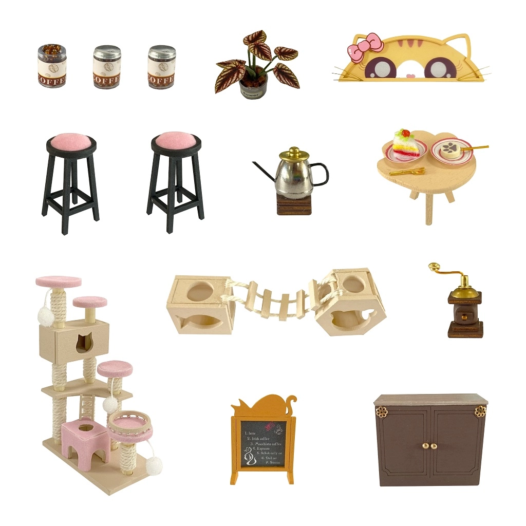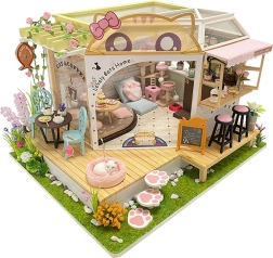 Pastatykite originalią miniatiūrinę kavinę, kupiną žavių kačių detalių, baldų ir aksesuarų. Kiekviena dalis teikia statybos džiaugsmą, o rezultatas tampa stilinga lentynos, darbo kambario ar vaiko kambario dekoracija. Dėl LED apšvietimo visos detalės išryškėja net vakare.