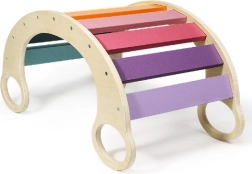 Elegantiška montesorio supynė su linksmomis vaivorykštės spalvomis pradžiugins mažus smalsius tyrinėtojus. Ji siūlo daugiafunkcį panaudojimą sėdėjimui, laipiojimui ir supimuisi, lavina motoriką, pusiausvyrą ir koordinaciją, o dėl kompaktiškų matmenų tinka bet kuriam interjerui. Maksimali apkrova 75 kg, stabili medinė konstrukcija ir 4 praktiškos rankenos saugiam suėmimui.