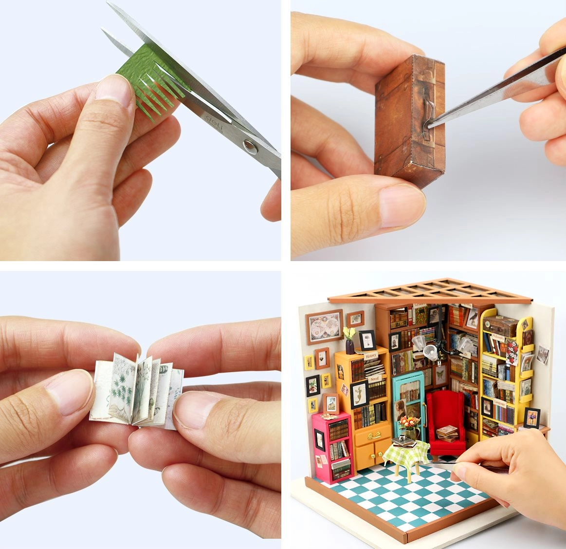 Atraskite miniatiūrinės bibliotekėlės žavesį, kuris savo detalėmis įtrauks į istorijų pasaulį. ROBOTIME rinkinys puikiai tinka visiems, mėgstantiems kūrybinį poilsį ir norintiems namus papuošti stilinga dekoracija. LED apšvietimas sukuria šiltą ir jaukią atmosferą, todėl modelis atgyja net sutemus.