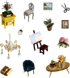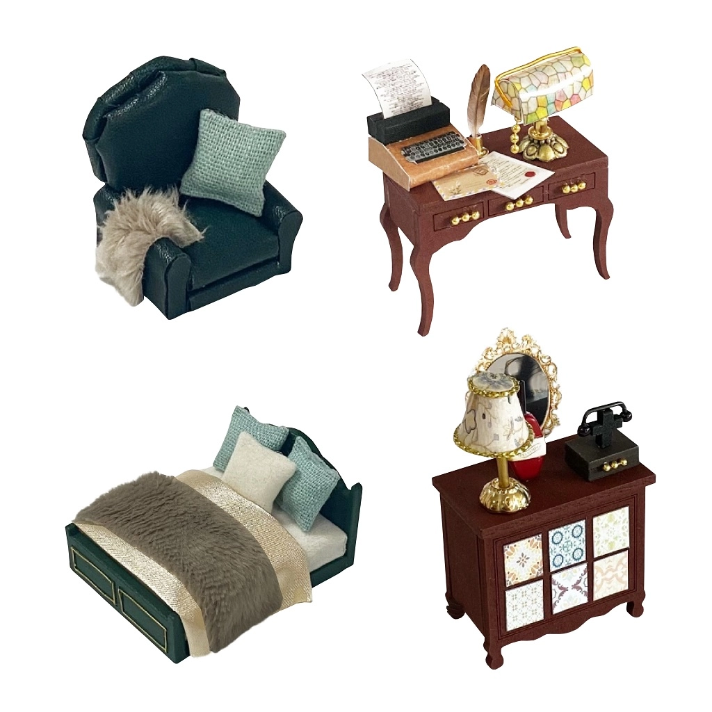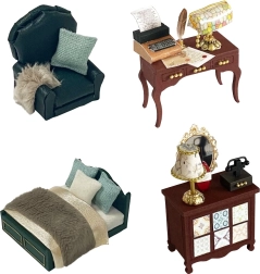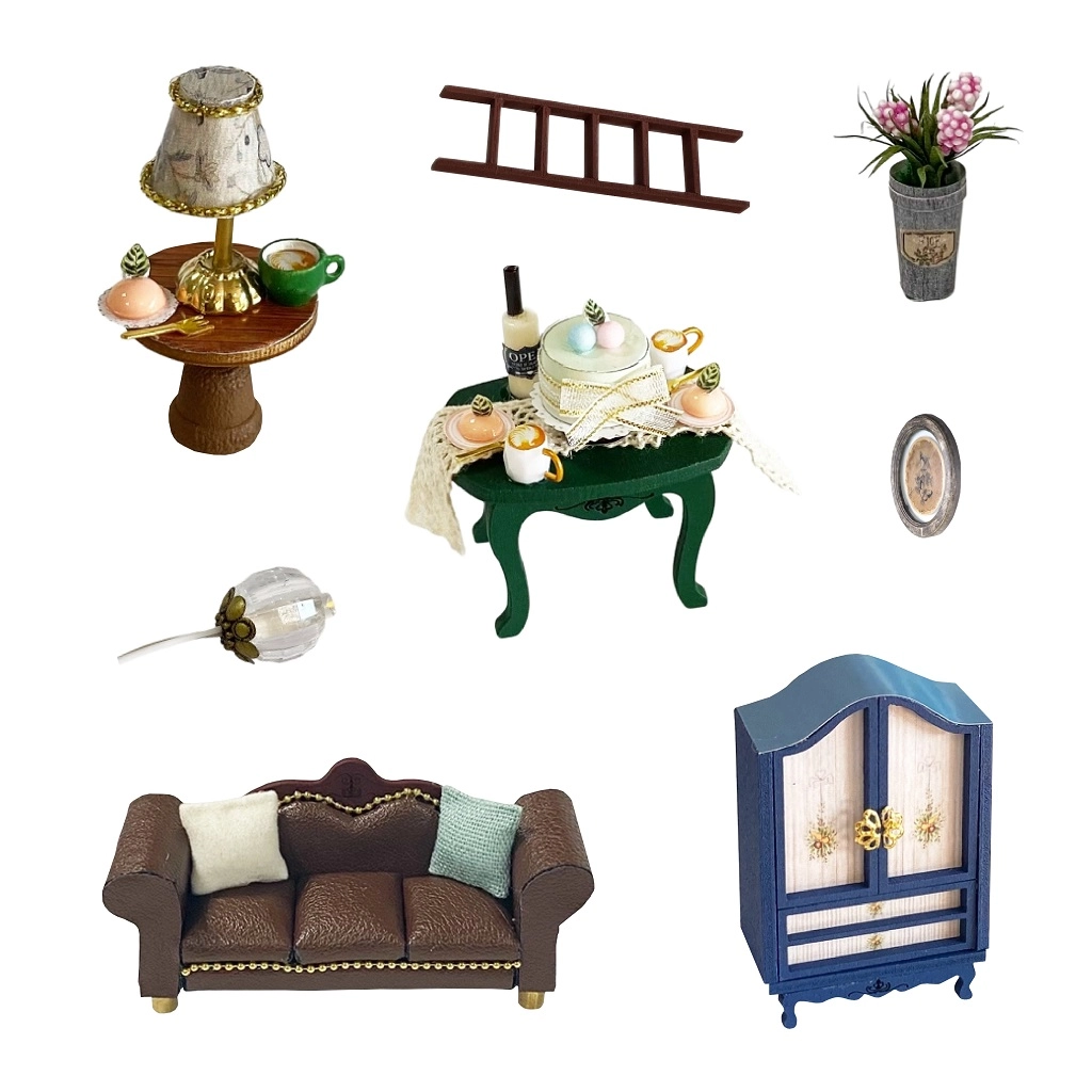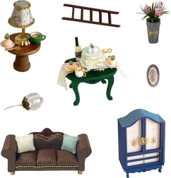 Komplekte yra miniatiūriniai baldai ir dekoracijos, kuriuos lengvai surinksite ir išdėliosite. Kiekviena detalė pabrėžia užbaigto modelio realistišką išvaizdą.