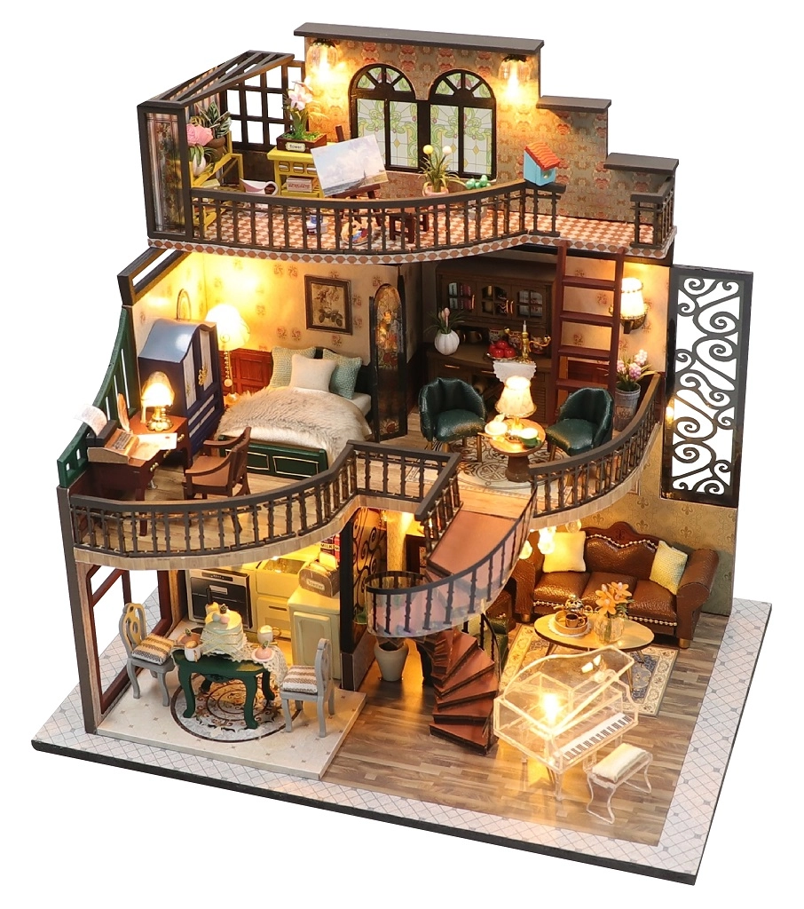 Sukonstruokite detalų mini namelį ir mėgaukitės valandomis kūrybiško užsiėmimo. Kiekvienas elementas – nuo baldų iki smulkių dekoracijų – apgalvotas iki smulkmenų. Įžiebus LED žibintelius, modelis įgauna jaukią atmosferą, kuri puikiai atrodo tiek ant lentynos, tiek ant darbo stalo.
