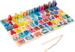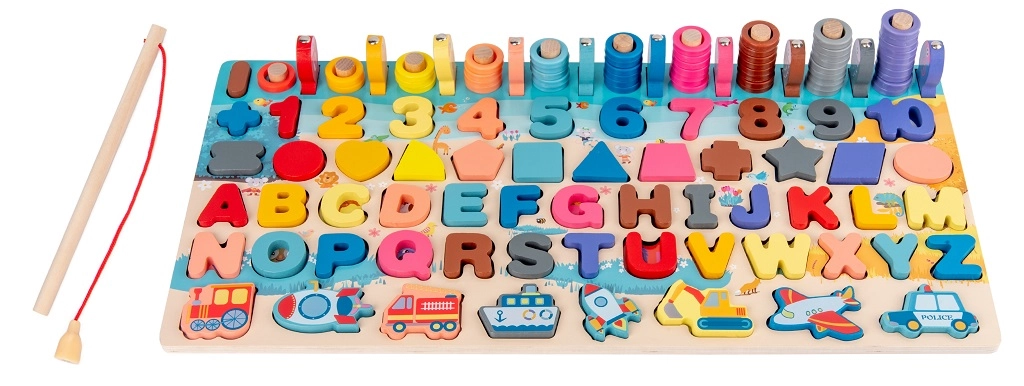 Medinė daugiafunkcė lenta siūlo edukacinį žaidimą, kuris derina pramogą ir mokymąsi. Žaidimo tikslas – išmokyti vaikus atpažinti skaičius, formas ir spalvas pasitelkiant interaktyvius elementus.