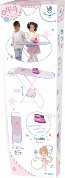 Sulankstoma lėlių lyginimo lenta iš GALA kolekcijos suteikia vaikams autentišką rūpinimosi drabužėliais patirtį. Dėl reguliuojamo 55 / 60 / 63 cm aukščio auga kartu su vaiku ir išlieka patogi net po kelerių metų žaidimo. Rožinis–baltas dizainas su subtiliais sportiniais motyvais ir derančia mėlyna spalva atrodo moderniai ir žaismingai.