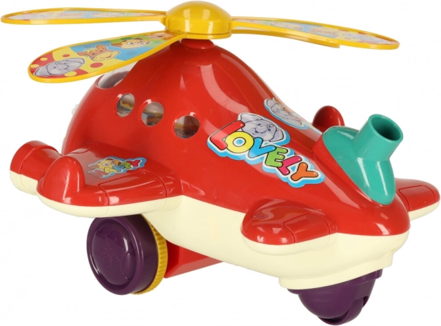 Žaidimas su sraigtasparniu padeda lavinti vaiko motoriką ir judesių koordinaciją. Tai puiki pagalba mokantis vaikščioti, kartu vizualiai ir klausos būdu stimuliuojanti vaiką.