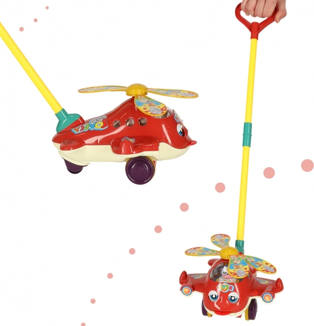 Šis stumdomas sraigtasparnis ant geltonos lazdos lengvai valdomas, o judančios dalys, tokios kaip sraigtai ir ratukai, stimuliuoja regą ir klausą. Žaidimas su sraigtasparniu gerina vaiko motorinius įgūdžius ir suteikia daug pramogų namuose ir lauke.