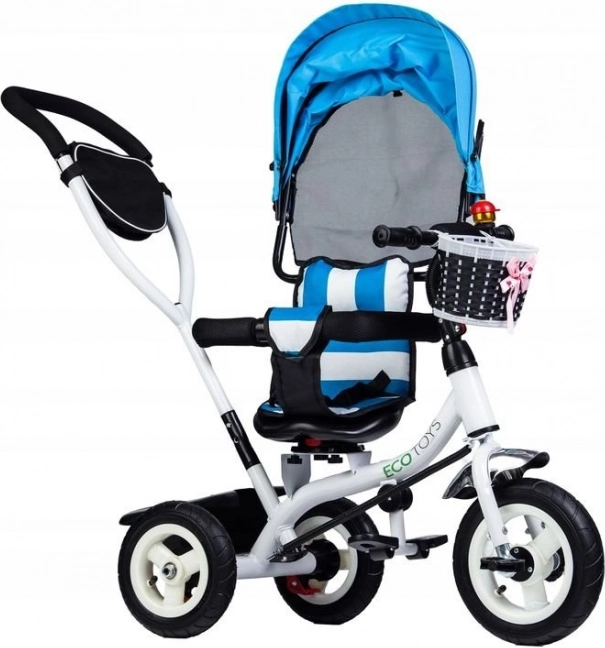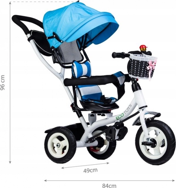 Šis ECOTOYS triratis sukurtas taip, kad užtikrintų jūsų vaikui saugumą ir patogumą žaidžiant ar vaikštant. Minkšta atkalte kartu su saugos diržais ir apsauginėmis juostomis pasirūpina, kad vaikas liktų saugiai savo vietoje. Nulenkiamas stogelis saugo vaikus nuo nepalankių oro sąlygų, o pasukama sėdynė palengvina įlipimą ir išlipimą.