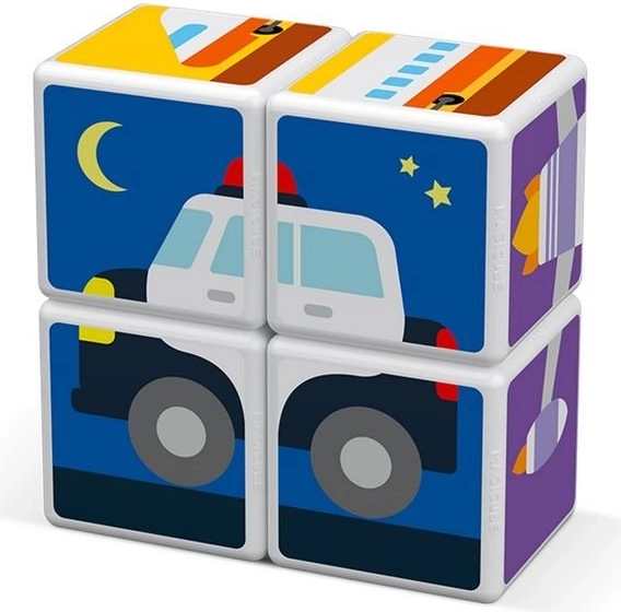 GEOMAG Magicube Printed Transport – išmani magnetinė konstravimo dėlionė, jungianti žaidimą ir mokymąsi. Keturi transporto motyvais spausdinti kubeliai ir trys dvišalės kortelės kviečia vaikus dėlioti automobilius, lėktuvus, raketas ir kitus paveikslėlius. Dėl magnetų, veikiančių ant kiekvieno krašto, statymas yra intuityvus ir saugus.