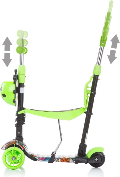 - Vaikiškas 3-i-1 paspirtukas su vairavimo strypu ir sėdyne
