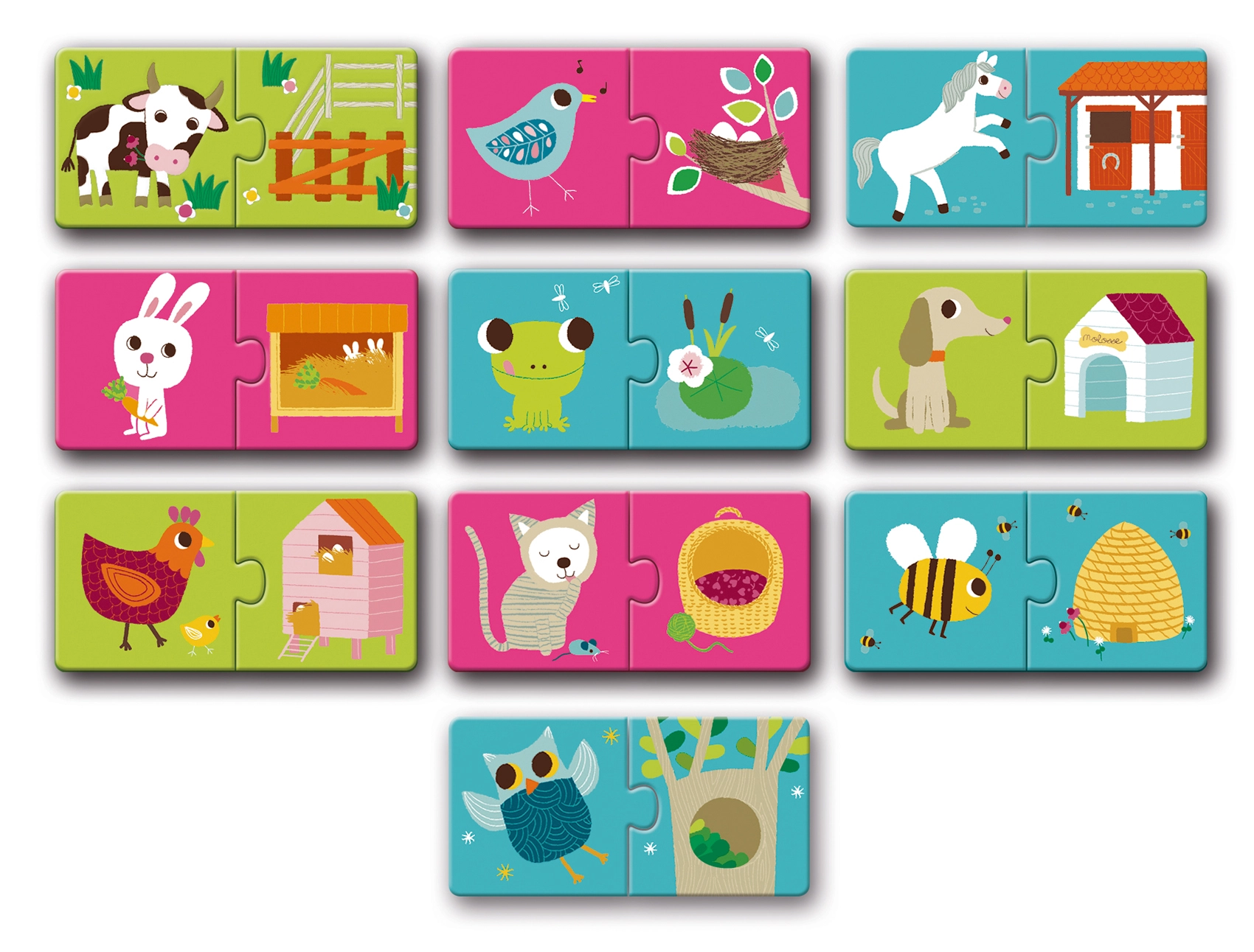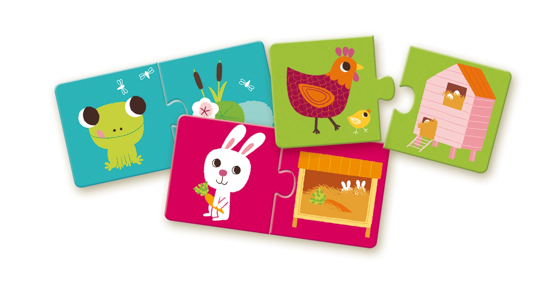 Šios paprastos dviejų dalių dėlionės yra idealios vaikams, kurie tik pradeda dėlioti. Didelės ir tvirtos, apie 3 mm storio detalės palengvina dėliojimą ir užtikrina ilgaamžiškumą.