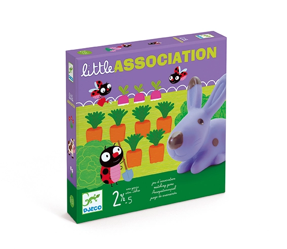 Žaidimas Djeco Mažoji asociacija – idealiai tinka kaip pirmasis stalo žaidimas. Vaikai priskiria gyvūnėlius aplinkai ar daiktams kortelėse – pavyzdžiui, triušelį prie morkos, žuvelę prie tvenkinio arba boružėlę – pievoje. Paprastas principas skatina greitą sprendimų priėmimą ir natūraliai lavina supančio pasaulio pažinimą.