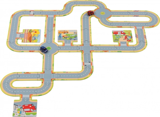- 45 trasos dalys, 2 metaliniai automobiliukai