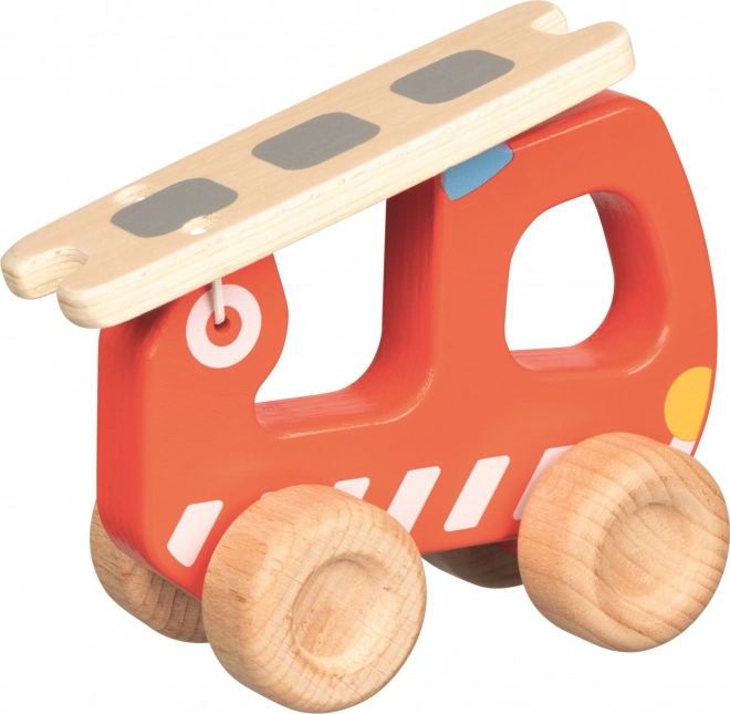 Medinis gaisrinės automobilis su kopėčiomis siūlo vaikams linksmą ir lavinamąjį žaidimą. Naudojami dažai yra saugūs sveikatai, o žaislą lengva paimti į rankas.