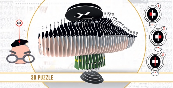 - 39 3D dėlionės detalės, 2 detalės išskirtinei 12 dalių dėlionei, surinkimo instrukcija