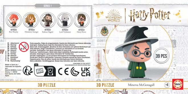 Mėgaukitės magiškomis akimirkomis su kolekcine 3D dėlione HARRY POTTER: Minerva McGonagall. Dėl iš anksto išspaustų kokybiško kartono sluoksnių figūrėlę lengvai surinksite be klijų. Surinkus gausite detalią maždaug 11,2 cm aukščio figūrą, kuri papuoš jūsų lentyną ir kolekciją.