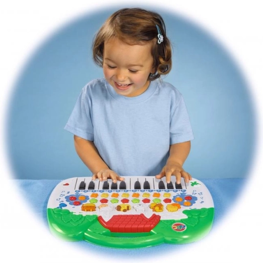 Suteikite vaikams muzikinio džiaugsmo su interaktyviu pianinu su gyvūnais. Dėl aštuonių muzikos instrumentų garsų ir šešių gyvūnų garsų vaikai lengvai susipažins su muzikos ir garsų pasauliu. Pianinas taip pat siūlo aštuonias linksmų melodijų, šviesos efektus ir intuityvų valdymą, kuris skatina kūrybiškumą ir lavina motoriką.