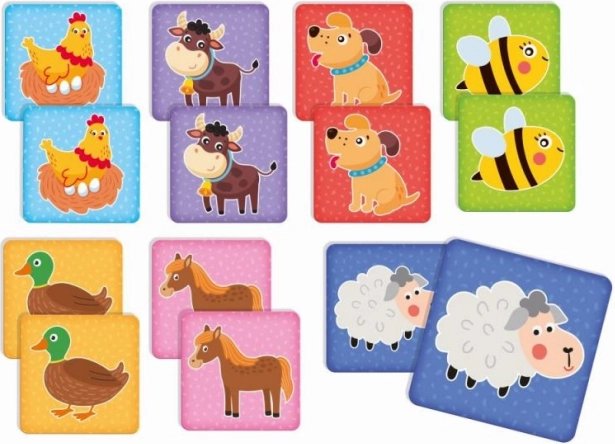 Atminties lavinimo žaidimai, kuriuose ieškoma porų su linksmomis gyvūnėlių iliustracijomis.