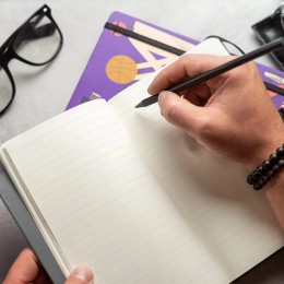 Integruota kilpelė pieštukui ir elastingas užsegimas užtikrina, kad viską turėsite po ranka, o jūsų užrašai bus apsaugoti.
