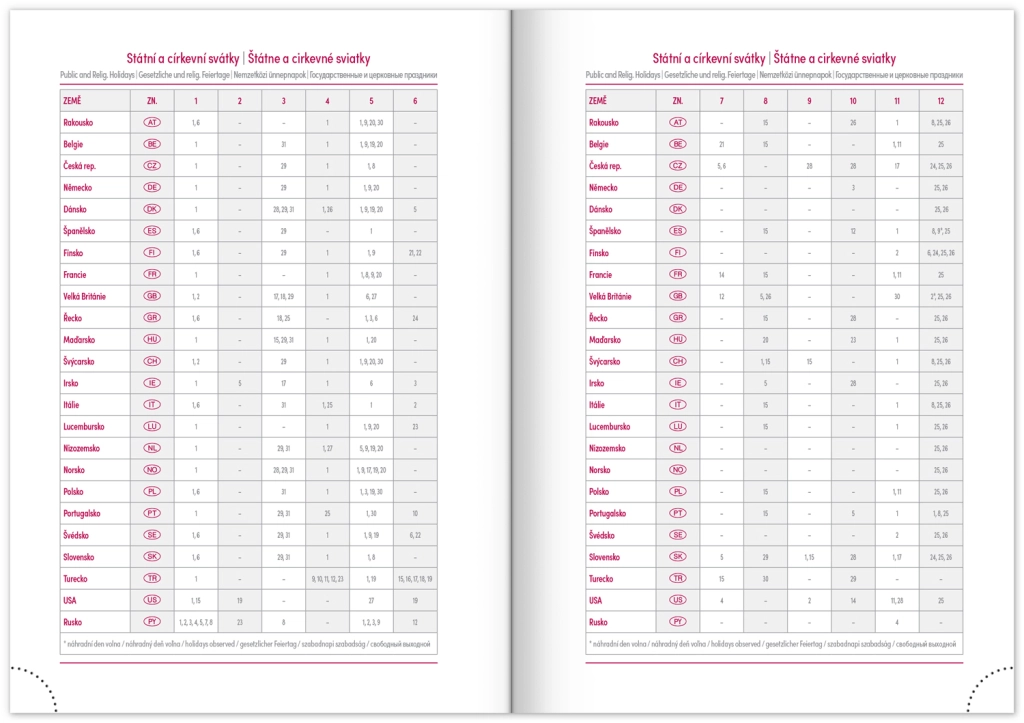 - Čekijos ir Slovakijos respublikų šventes bei tarptautines šventes