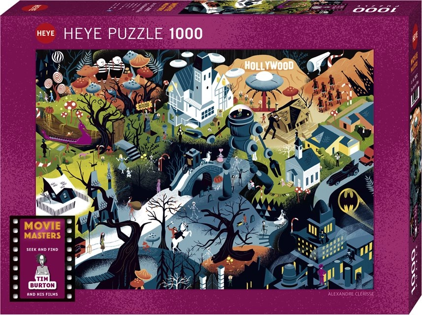 Atraskite Timo Burtono kino magijos žavesį su šiomis išskirtinėmis HEYE prekės ženklo dėlionėmis. Dėlionė Movie Masters: Timo Burtono filmai sudaryta iš 1000 kruopščiai pagamintų detalių. Sudėtos dėlionės dydis – 70 x 50 cm, todėl puikiai atvaizduojamos ikoniškos garsiojo režisieriaus filmų scenos.