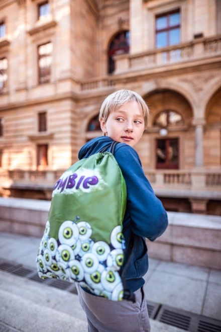 Kuprinė padengta žalių pieštinių akių grafika ir užrašu „Zombie“, kuris traukia dėmesį ir suteikia išskirtinumo.
