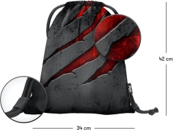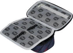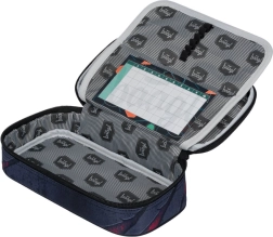 Tvirtas penalo dėklas su atverčiama pertvara, vidine kišene su užtrauktuku ir pamokų tvarkaraščiu (be priemonių) papildo lengvą maišelį avalynei ar kūno kultūrai su surišamomis virvelėmis nešiojimui ant nugaros.