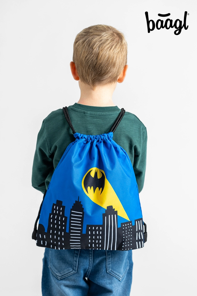 Mėlyną krepšį puošia ikoniškas Betmeno logotipas ir išskirtinis miesto motyvas.
