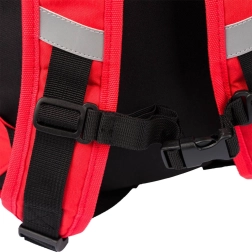 Reguliuojamos pečių petnešos ir atspindintys elementai užtikrina komfortą ir saugumą.