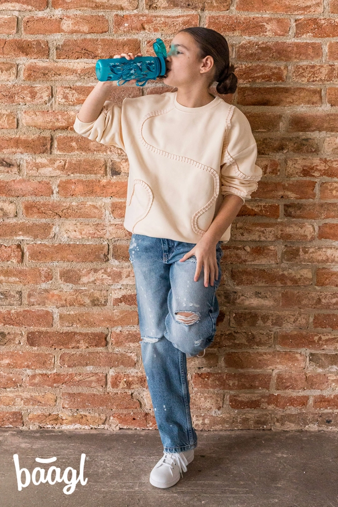 Kregždučių ir gėlių motyvas suteikia žaismingą išvaizdą, o dirželis palengvina nešiojimą keliaujant į mokyklą, treniruotę ar išvyką. Naudodami daugkartinio pildymo gertuvę taip pat mažinate vienkartinio plastiko vartojimą ir palaikote tvarų gyvenimo būdą.