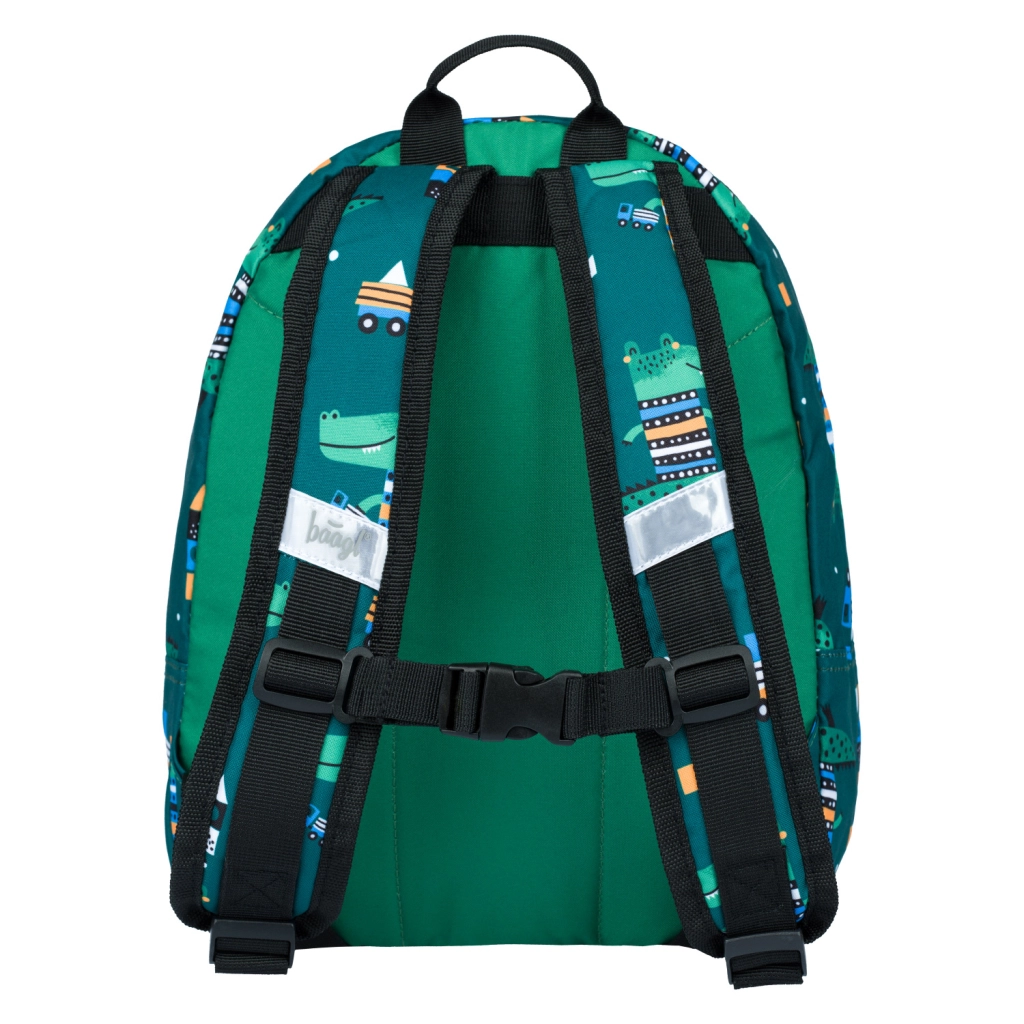Lengva ir patvari ikimokyklinė BAAGL kuprinė su krokodilo motyvu mažiesiems tyrinėtojams. Siūlo vieną pagrindinį skyrių ir praktišką priekinę kišenę, tvirtą paminkštintą nugarą, ilgio atžvilgiu reguliuojamus paminkštintus diržus, atšvaitinius elementus ir pagaminta iš vandeniui atsparios medžiagos.