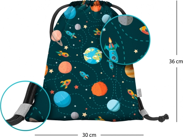 Lengvas ir praktiškas ikimokyklinis Baagl maišelis su Planetų motyvu idealiai tinka avalynei ir smulkmenoms į būrelius bei laisvalaikiui. Pagamintas iš tvirto, plaunamo audinio, su sutraukimu tvirtomis virvelėmis, kurios taip pat leidžia patogiai nešti ant nugaros.