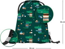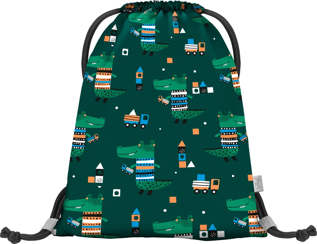 Linksmų krokodilo motyvų ikimokyklinis maišelis idealiai tinka avalynei ir smulkmenoms darželiui bei laisvalaikiui. Pagamintas iš tvirto, plaunamo audinio, o dėl tvirtų virvelių patogu nešioti ant nugaros.