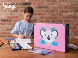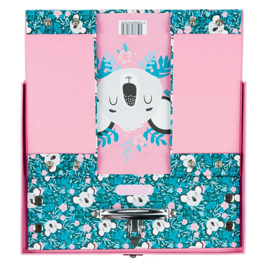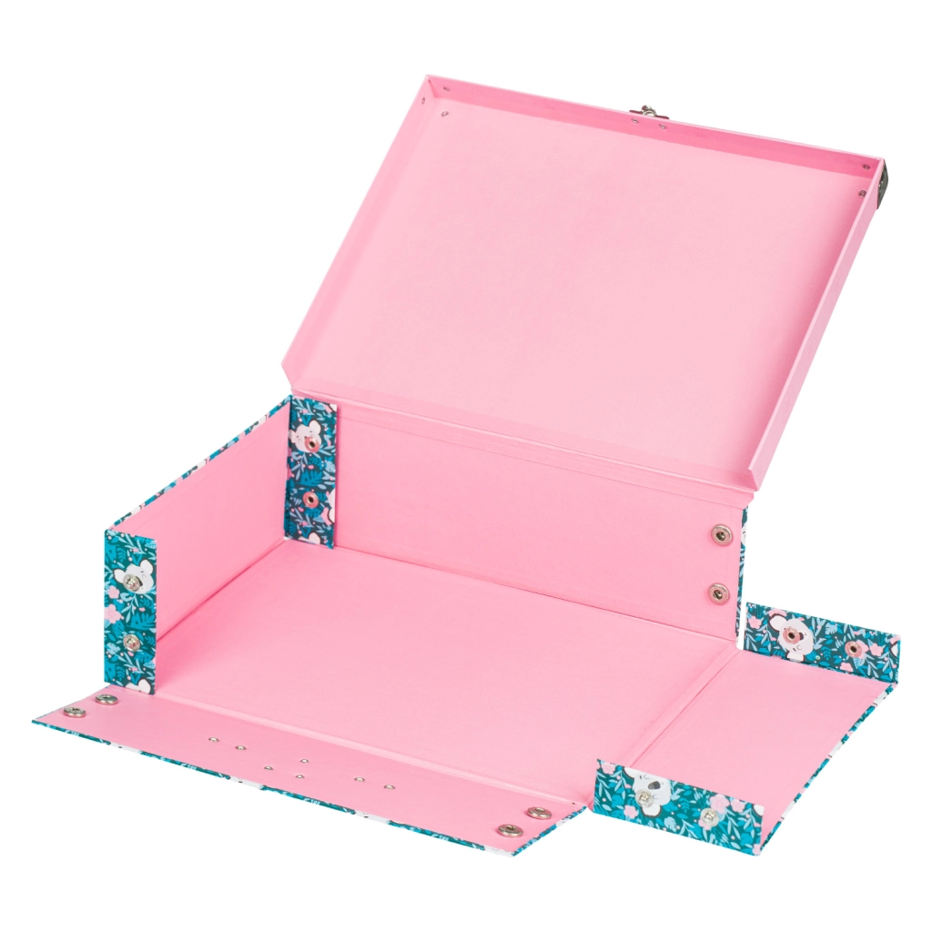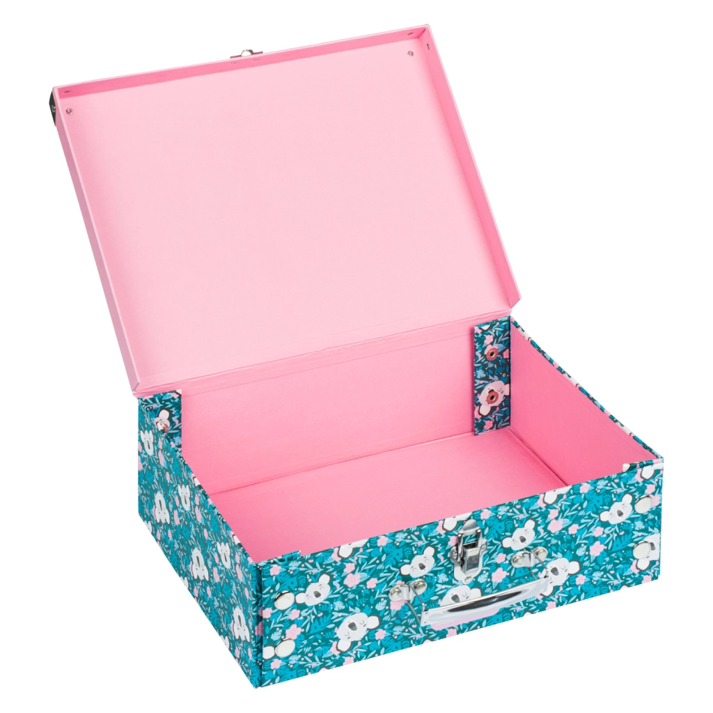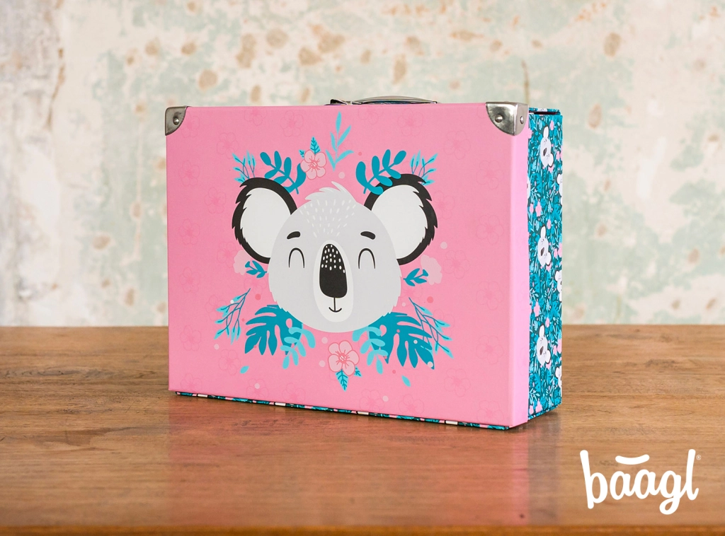 Sulankstomas mokyklinis lagaminėlis su subtiliu koalos motyvu puikiai tinka dailės priemonėms, sąsiuviniams, žaislams ir smulkmenoms kelionėse. Elegantiški metaliniai elementai ir sutvirtinti kampai užtikrina ilgaamžiškumą, o lengva konstrukcija iš tvirto laminuoto popieriaus palengvina kasdienį nešiojimą.