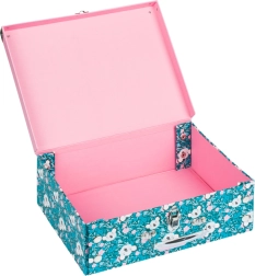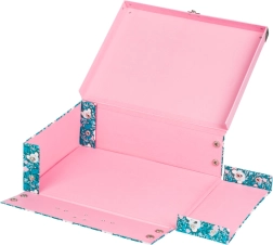 Metalinė rankena patogiai laikosi, o klasikinė sagtis patikimai saugo turinį. Idealu dailės reikmenims, sąsiuviniams ir vaikų lobiams.
