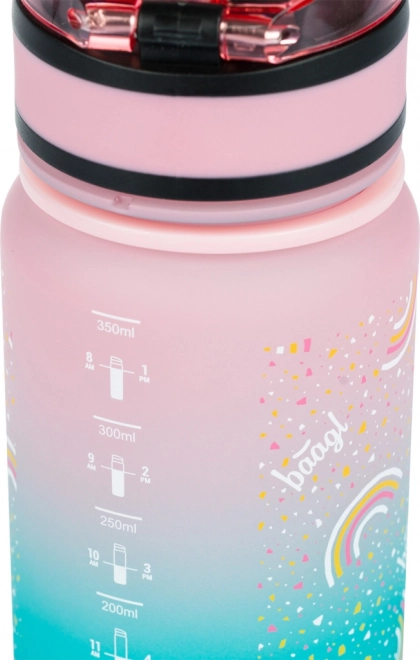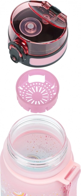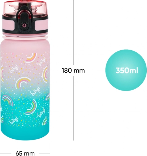 Stilingas vaikiškas buteliukas iš kokybiško tritano su vaivorykštės gradientu derina saugią, be BPA medžiagą, nesuląžantį užrakinamą dangtelį ir praktinį sietelį vaisiams ar arbatai. Idealu į mokyklą, išvykas ir sportui.