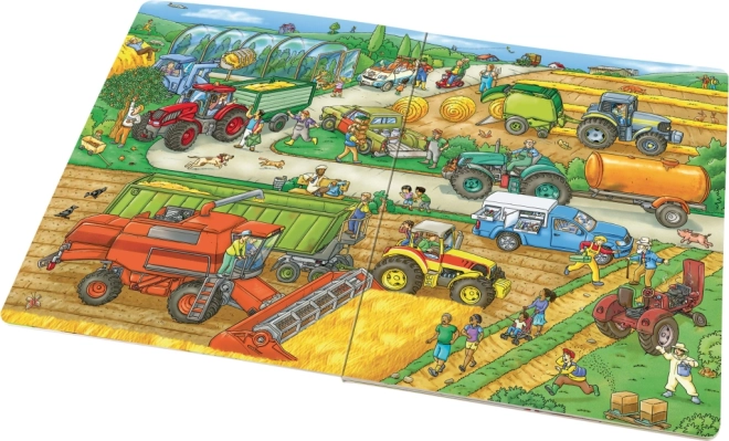 Atrakinkite ūkio gyvenimo žavesį su šia didele paveikslėlių knyga, kuri vaikus nuves po visus ūkio užkaborius. Jų laukia gyvūnai, veikiantys žemės ūkio mechanizmai, įvairiausių profesijų žmonės ir linksmos scenos. Kiekviename atvarte jie gali ieškoti personažų ir sekti jų istorijas – žaismingas mokymasis, stebėjimas ir susikaupimas viename.