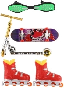 Šis pirštų rinkinys siūlo keturis mėgstamus miesto sportus mini formatu: riedlentę, waveboard banglentę, in-line pačiūžas ir paspirtuką. Vaikai gali išbandyti naujus triukus, kurti savo trasas ir lavinti kūrybiškumą bei vikrumą. Dėl kompaktiškų matmenų rinkinys lengvai telpa į kuprinę ir puikiai tinka pramogoms bet kur.
