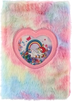 Mėgaukitės rašymu ir kūryba su šia stilinga vaivorykštine pliušine užrašų knygele. Minkštas paviršius malonus liesti, o širdelės formos langelis su blizgučiais ir vienaragiu suteikia viršeliui žaismingą, magišką išvaizdą. Užrašų knygelė puikiai tinka mokyklai, laisvalaikiui ir kaip asmeninis dienoraštis.